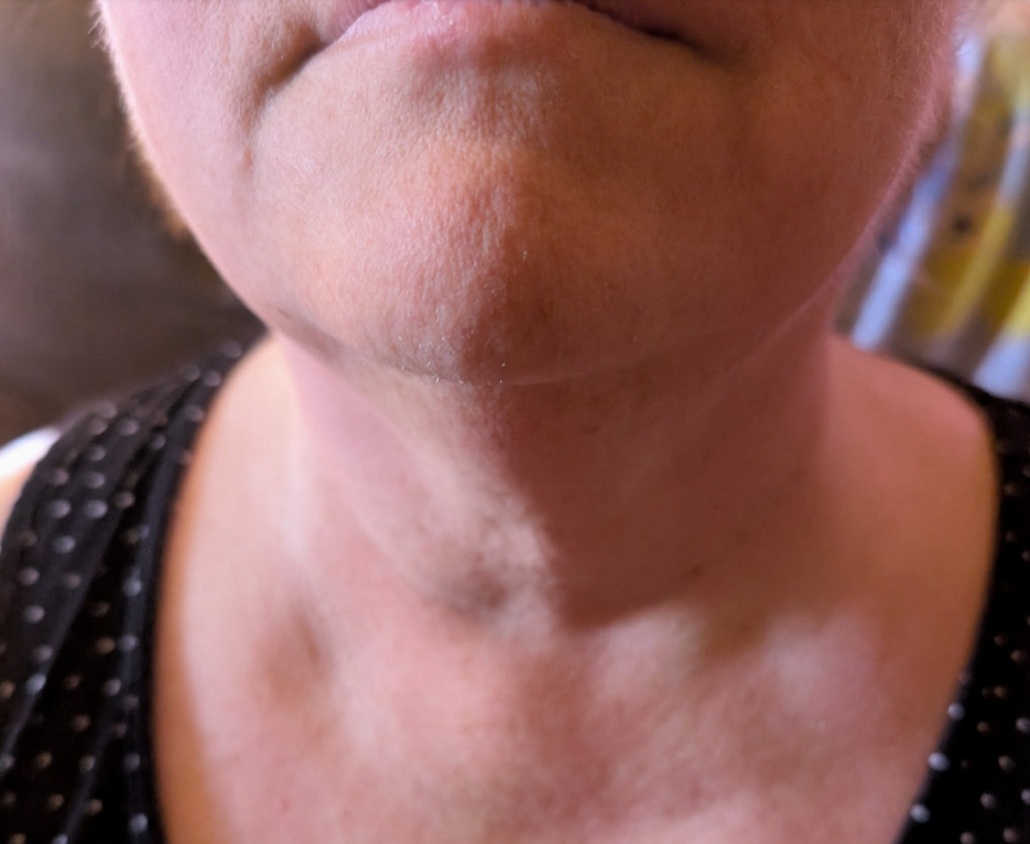This client received one treatment to the following areas: Under chin, jawline, neck, tops of shoulders (traps), collar bones and upper chest.
