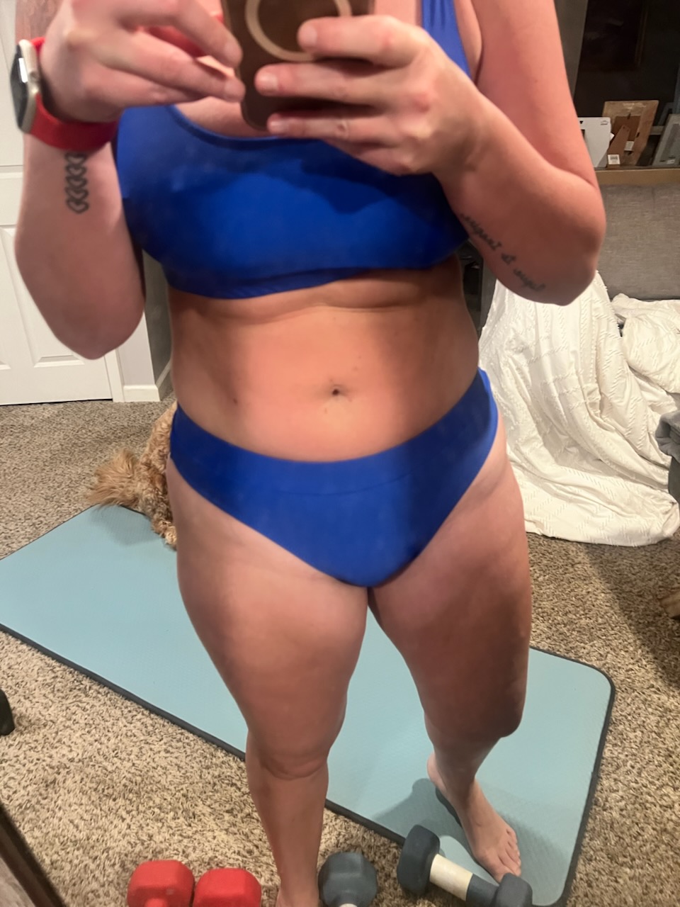 This client received two sessions of fat freezing to her lower belly and loves handles. Images here taken roughly two months apart.