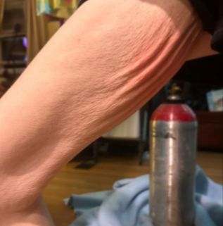 This client received one treatment of cryo skin tightening on her thighs. Images were taken immediately before and after the treatment.